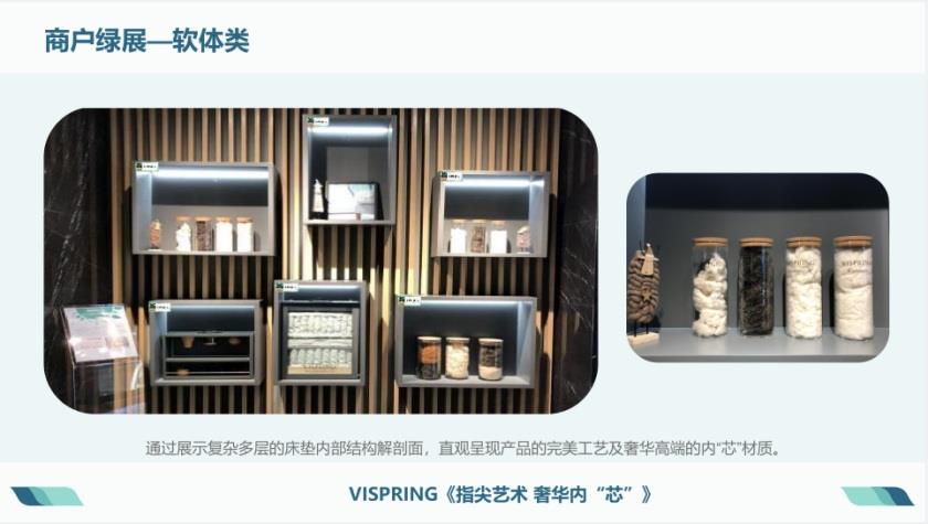 截至目前累計(jì)打造綠展點(diǎn)位268處,其中優(yōu)秀展陳31個(gè)品牌,通過綠色展陳助力商戶成交落單轉(zhuǎn)化680萬元。