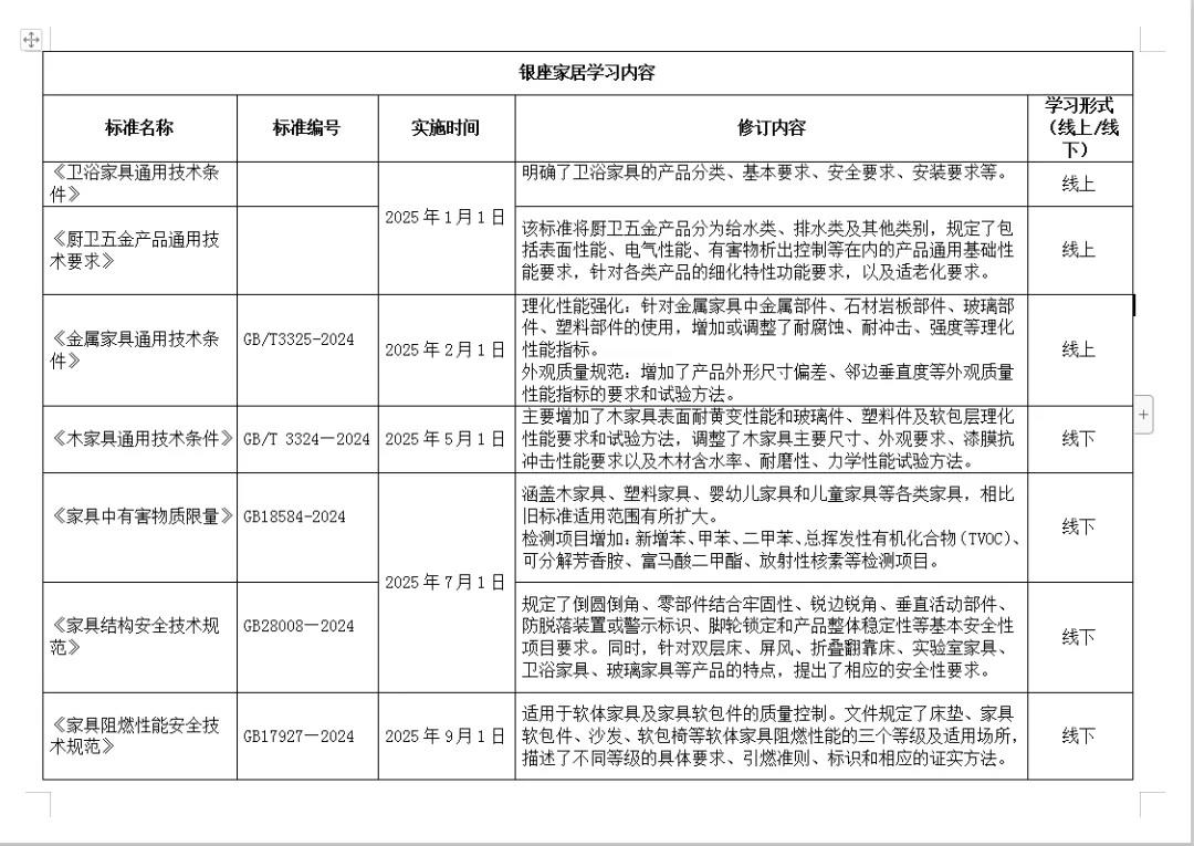 隨著2025年多項(xiàng)家具國(guó)家標(biāo)準(zhǔn)修訂及實(shí)施,銀座家居聚焦“學(xué)標(biāo)準(zhǔn)、懂標(biāo)準(zhǔn)、用標(biāo)準(zhǔn)”武裝員工、賦能品牌,定期邀請(qǐng)專家?guī)ьI(lǐng)團(tuán)隊(duì)解讀標(biāo)準(zhǔn)、參觀產(chǎn)品質(zhì)檢、訪廠學(xué)習(xí)、環(huán)保公開課,對(duì)商品質(zhì)量管控機(jī)制再升級(jí),將外部權(quán)威監(jiān)管力量深度內(nèi)化為家居賣場(chǎng)商品質(zhì)量管控體系的核心支柱。